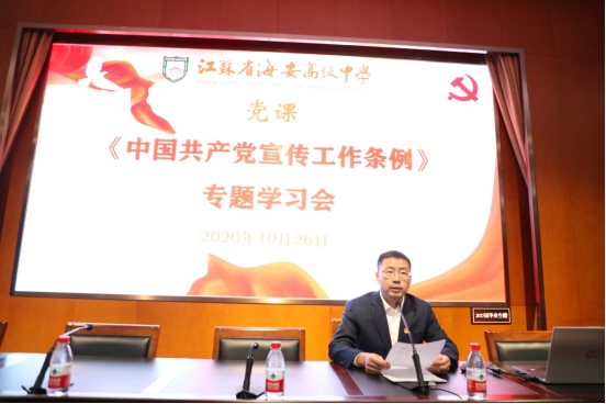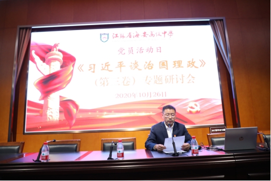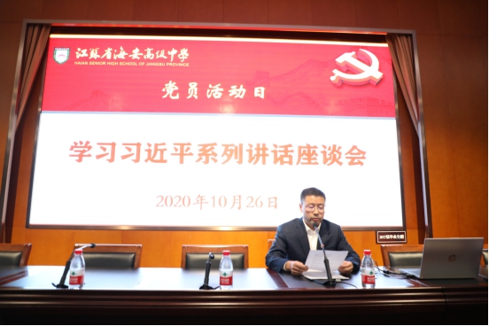 2020年10月26日下午,江苏省海安高级中学在奥林匹克楼一楼第一会议举行了以“坚定理想信念、坚守初心使命”为主题的党员活动日活动。活动由学校党委委员、副校长周峰主持,全体党员参加了活动。