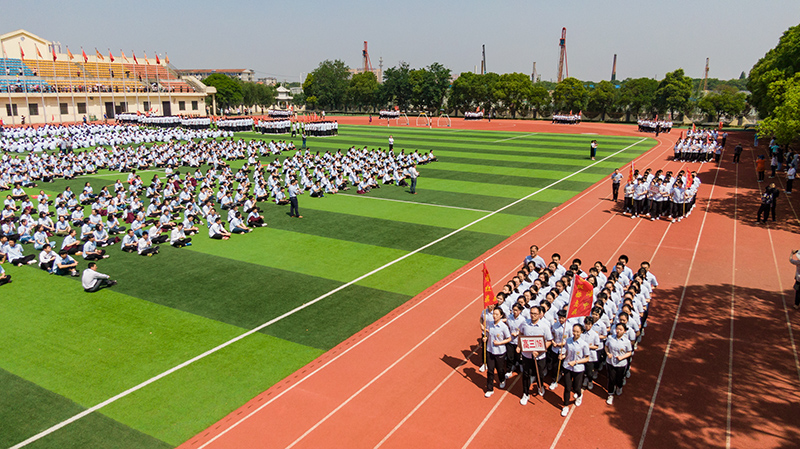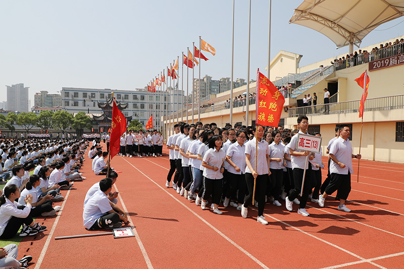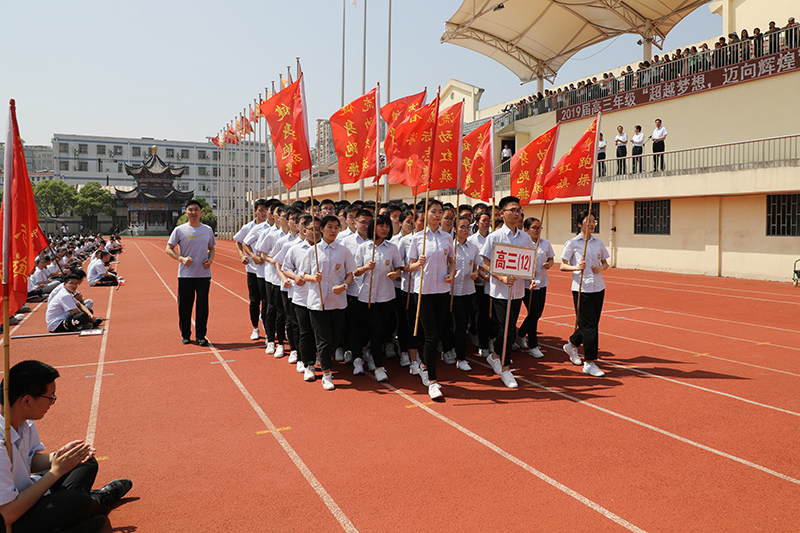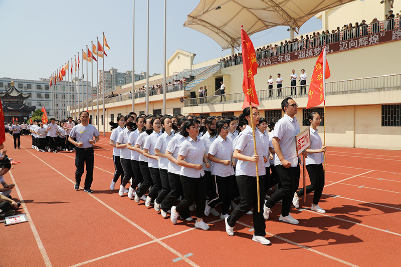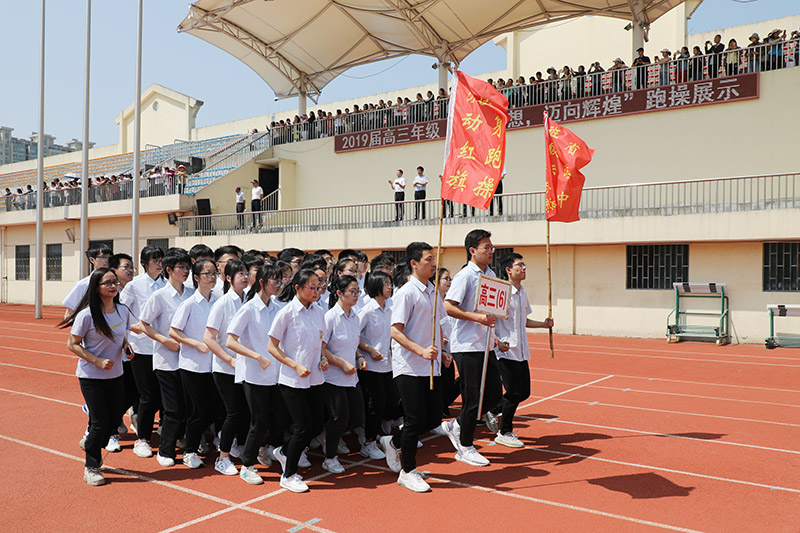 2019年6月3日上午,海安高级中学在大操场举行了2019届高三学生“超越梦想,迈向辉煌”跑操展示活动。高三年级全体同学热情饱满,斗志昂扬,队列整齐,步伐坚定,展示了他们三年来优异的跑操成果,也展示了高三年级学生积极进取、勇敢顽强的青春风采。学校中层以上干部、高三年级全体老师、高一高二全体学生和部分高三学生家长到场为高三学子加油助威。跑操展示活动由学校副校长董裕华主持。